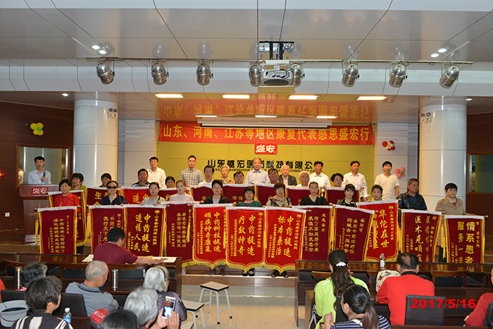 劉希山董事長親自接待康復患者并為大家作報告,全場無數次響起雷鳴般的掌聲,各地康復患者獻上一面面謝恩錦旗,醫患和諧場景感天動地。盛宏萬旗館收藏的錦旗已經達到了15000多面。