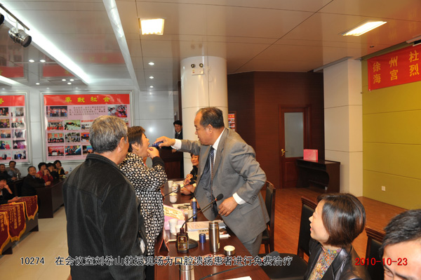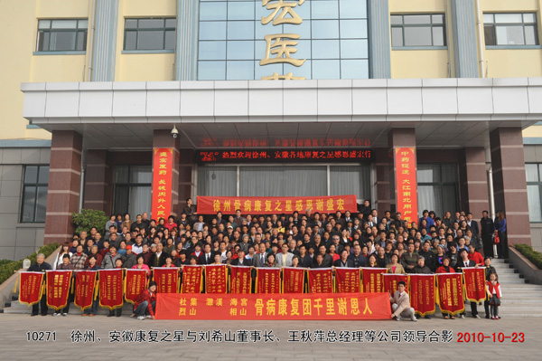 “中藥提速是治療骨病頑疾的終點站,其它方法都治不好了,奇跡往往都在‘終點站’出現了……” 這是康復患者發自肺腑的心聲,正是有著這樣奇特的療效,2010年10月23日,徐州、杜集、濉溪、海宮、烈山、相山等地的300名股骨頭壞死、腰椎間盤突出、頸椎病等頑疾康復患者攜帶錦旗到達盛宏謝恩,看望他們的救命恩人——古今名醫中治療頑疾最多、被譽為“當代華佗”的劉希山教授。由于劉希山教授發明的電磁治療儀療效獨特,所以上百萬人得到治療,因康復而感激不已、不遠千里來謝恩的代表今天已經達到了25省、百余地市、102批、共計一萬三千多名。 王秋萍總經理致歡迎詞,徐州中藥提速服務中心主任張元杰代表康復患者致感謝詞。劉希山教授作中藥提速健康報告,他以通俗的比喻來闡述世界醫學史上的第三次用藥革命的重大意義:“治療頑疾就像一次長途跋涉,口服藥物如同行走千里,因為它要多走消化吸收和血液循環兩條彎路才到病灶。西方針劑可以少走五百里,因為它只需經過血液循環一條彎路。我們研究成功的經皮給藥如同一公里路程,因為它無需經過消化吸收和血液循環,直達病灶!這就是中藥提速快速治愈頑疾的關鍵!……”劉希山教授還現場為口腔潰瘍、牙齦炎、鼻炎等患者進行免費治療,給大家贈送各類藥品和洗護用品,他精彩的報告和不計名利、孜孜奉獻的大愛精神感動了所有的客人,贏得了全場一次次雷鳴般的掌聲。 一位位康復患者爭先恐后獻上錦旗,滿懷喜悅地上臺分享使用中藥提速獲得康復的感受。康復患者范后順參觀了盛宏公司后對“咱們是一家人”的盛宏理念體會深切,他激動地說:“識得廬山真面目,盛宏療效暖人心;中藥提速治頑疾,藥到病除是目的!”
