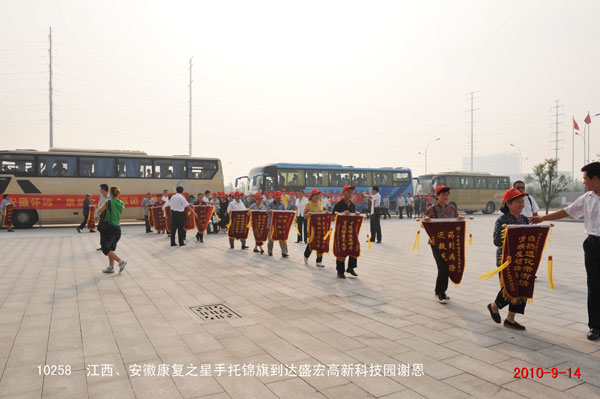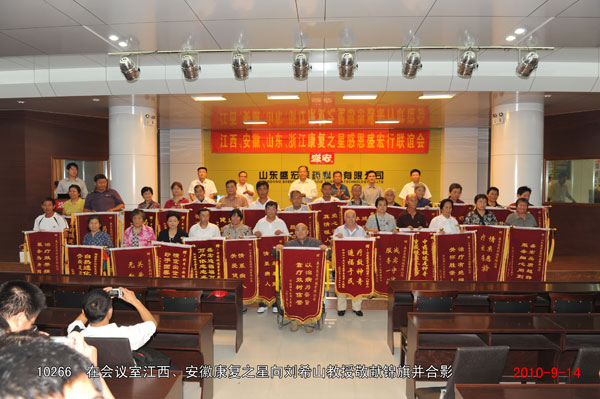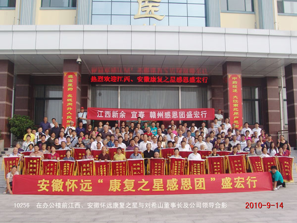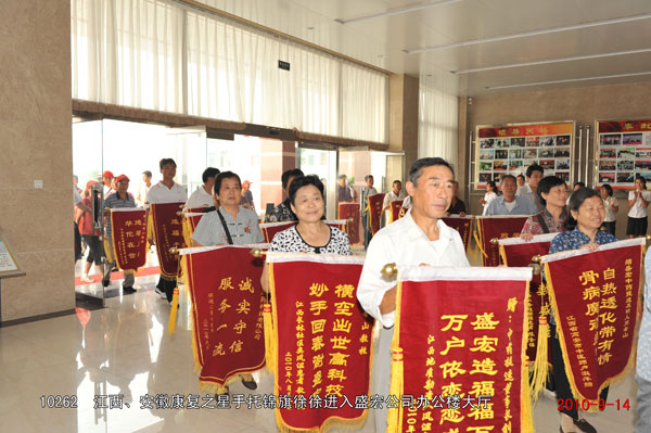2010年9月14日,江西、安徽懷遠的近200名頸椎病、股骨頭壞死、腰椎間盤突出等頑疾康復患者攜帶錦旗到達盛宏謝恩,至此到盛宏總部謝恩的康復患者代表達到25省、百余地市、101批、共計一萬兩千多名。 “我要求自己:所有的研究都要貼近人民的健康,人民需要什么,我就要發明什么”,劉希山教授作中藥提速健康報告,全場客人無不聚精會神、認真聆聽,“如果你的手腕子得了病,怎樣用藥好得最快?一是口服藥,它多走了消化吸收和血液循環兩條彎路才到病灶,怎么能好得快呢?二是針劑,多走了血液循環一條彎路,藥物仍然不能直達手腕;三是經皮給藥,也就是把中藥提速產品自熱透化帶直接放在手腕上,這樣才能讓藥物直達病灶,這就是中藥提速快速治愈頑疾的關鍵!……”劉希山教授用通俗易懂的語言講出了微妙精深的中藥提速理論精髓,贏得了全場雷鳴般的掌聲。 一位位康復患者爭先恐后獻上錦旗。安徽懷遠78歲的王秀生老先生因患頸椎、腰椎病,不能站、不能走,下樓要兒女抬著,因生活不能自理而痛苦不堪。今年使用自熱透化帶僅僅5個月就能自己扶著樓梯下樓了,還能走30米遠。今天他坐著輪椅不遠千里到盛宏謝恩。劉希山教授為王先生的快速恢復感到欣慰,當場讓工作人員取來自己剛剛為87歲的老母親祝壽而特意購買的“濰坊紅木嵌銀百壽拐杖”贈給王老先生,劉教授說:“希望你快速康復,下次來的時候就用這個拐杖,不要再坐輪椅了!”——至誠的話語、熱切的希望與劉教授難舍能舍、大愛無疆的胸懷,讓王老先生與老伴感動地老淚橫流,現場的康復之星和工作人員也忍不住流下了淚水。 愿劉希山教授愛心灑遍全球,愿每一位頑疾患者都得到救治,愿天下人永葆健康!