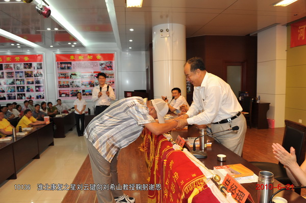 第78批感恩盛宏行用戶到達公司 “這回我看到劉希山教授真人了!”河北邯鄲一名叫崔新紅的康復患者激動地說。 2010年6月21日,河北和安徽淮北的200多名康復患者攜帶錦旗到達盛宏感謝,至此到盛宏總部謝恩的康復患者代表達到了25省100余地市78批共計8000多名。王秋萍總經理致熱情洋溢的歡迎詞,河北服務中心主任張秋喜、安徽淮北服務中心主任黃鳳偉分別代表康復患者致感謝詞。 劉希山教授應客人要求作中藥提速健康報告。“人體的潛能由毛細血管迅速開放而實現,中藥提速能活血化瘀,激揚正氣”,劉教授的報告揭開了中藥提速攻克頑疾的“神秘面紗”,“盛宏中藥提速沿用了古代砭、針、灸、藥的中醫治病原理,采用其方法,不用其做法,電磁、電熱、遠紅外、強透化、藥氣離子導入五大療法迅速活血化瘀,如同五大軍團圍攻一股小劫匪,所以對治療股骨頭壞死、肝病、腎病、腰椎間盤突出等頑疾實現了快速見效……”報告結束,全場響起雷鳴般的掌聲。 “盛宏公司是一個負責任的公司,盛宏人是負責任的人,盛宏產品是負責任的產品!”康復患者們深有感觸地借用《希山格言》之語來表達對盛宏公司的感激和信任,他們競相向劉教授獻上錦旗,并鞠躬謝恩,現場氣氛活躍,和諧之曲頻頻奏響。河南書法大師郭同坤先生還現場揮毫潑墨,寫下“中藥提速,克服頑疾”八個大字贈劉希山教授。 附:部分康復患者 崔新紅,男,42歲,河北邯鄲人,2008年患上雙側股骨頭壞死,腿伸不直、行動困難,醫院建議手術,為了保險本人沒有接受,2010年3月份開始使用盛宏電磁治療儀,3個月治療效果明顯,能伸直腿,活動從容。 張香容,女,67歲,河北邯鄲人,患腰椎間盤突出等多病,使用過藥物治療、按摩、推拿等治療方法,效果不好,使用盛宏電磁治療儀13天見效,中間曾因疼痛懷疑,經鼓勵連續使用半年痊愈。 劉云鍵,男,68歲,安徽淮北人,2008年患上風濕性關節炎、骨刺,行動受限,使用過藥物、理療等治療方法,效果不好,2010年使用盛宏電磁治療儀1個月疼痛即消失,行動自由。劉先生在謝恩現場深有感觸地說:“盛宏公司是一個負責任的公司,盛宏人是負責任的人,盛宏產品是負責任的產品!”并向劉希山教授鞠躬致謝。 趙斌,男,72歲,安徽淮北人,其老伴患有膝關節增生,不能下床、行動困難,2009年底病情加重,2010年初二住院治療了26天無效,使用盛宏電磁治療儀10天就可以下床挪步,經過半年的治療痊愈,2010年6月21日帶女兒一家三口來盛宏向劉希山教授謝恩。 趙芳英,女,61歲,安徽淮北人,患Ⅲ期雙側股骨頭壞死,疼痛難忍,下不了床,醫院無好辦法。2010年4月開始使用盛宏電磁治療儀2個多月,疼痛減輕,走路輕松多了,現能拄雙拐(保護)行走。