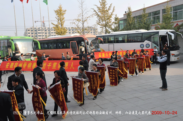 2009年11月6日 ,河南新鄉、開封近110名股骨頭壞死、頸椎病、腰椎間盤突出、骨質增生、關節炎、腎病、糖尿病等頑疾康復患者,不顧寒流到來赴盛宏公司謝恩,并向“中藥提速第一人”劉希山教授奉獻錦旗。至此,到盛宏謝恩的患者已達25省90余城市共計59批6000余人。