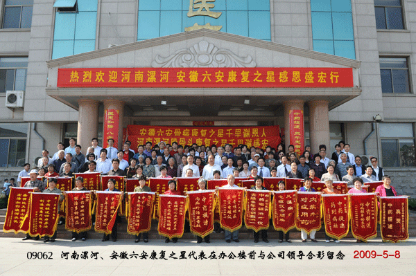 正值溫暖舒適的初夏季節,齊魯大地之美麗鳶都再次迎來了兩批攜滿錦旗的“感恩盛宏行”隊伍,這已經是全國第36和37批骨病頑疾康復患者到盛宏公司感謝。一百多名客人不顧遠途疲勞,直達盛宏總部。 劉希山教授、王秋萍總經理率公司全體管理人員熱情迎接,對客人們的關愛之情溢于言表。 王秋萍總經理致歡迎詞,河南漯河服務中心主任闞松峰、安徽六安服務中心主任程晉春分別發言。兩位主任分別代表兩省康復患者們表達了對 劉教授和盛宏的感激之情,并對《希山格言選》給予高度評價,真摯地向大家介紹了“寶書不離身”和“全家都獲益”的切身感受。 應客人們強烈要求, 劉希山教授為大家作中藥提速專題報告。 劉教授厚積薄發,用通俗易懂的語言向大家作了一場精彩的報告。他在報告中指出了人人應該掌握、人人都應遵循的保健“秘方”、生活常識和療病“關鍵”。 一、“健康三養”保健康。 營養、保養和修養,“三養”缺一不可。 二、“長壽八訣”延壽命。八條秘訣是:要想身體健,經常去鍛煉;要想身不累,子時前入睡;要想大腦好,越老越用腦;要想一身輕,身體要四通;要成長壽翁,一切要看空;要想不生病,飲食最為重;要想身體好,綠色不能少;要想心情好,不氣也不惱。 三、“三大要素”療頑疾。“足量、有效的藥物和直達病灶”是 劉希山教授研究發現的治頑疾“三大要素”,盛宏電磁治療儀多年來被譽為“股骨頭壞死克星”,就是因為它 100%滿足了這三個要素。 四、“安全治療”是關鍵。國家藥監局邵明立局長在接見 劉希山教授時強調:為了人民的健康,能內病外治的就不要口服用藥;能口服藥物的就不用肌肉注射;能肌肉注射的就避免靜脈注射;能打針治好的就堅決不要動手術。所以中藥提速采用的內病外治方式,是最讓國家放心、最讓百姓安心的治病方式。 五、“病從口入”要警惕。酗酒、激素和外傷是股骨頭壞死的三大發病原因,前兩種都是“病從口入”。為什么“激素”也是從口里進去的? 劉教授請大家留心那些 生長周期極短的肉食禽畜,留心那些“漂亮甜美”的非當季瓜果蔬菜。 六、“抑制腫瘤”走對路。當前,國內外醫學界還沒有找到一種安全有效的抗癌物質。但我們調查發現,100多萬盛宏電磁治療儀使用者沒有一人得腫瘤的,原來患有腫瘤的還大大減輕了病痛或獲得康復,這正源于電磁儀五大療法在高溫下的活血化瘀作用。 “老牛自知夕陽晚,不待揚鞭自奮蹄。”一場報告,形 成了劉教授“健康人生六大衷告”,諄諄告誡,唯恐不周。報告凝聚了“中藥提速第一人” 劉希山教授作為醫者的愛心,凝聚著他十幾年的汗水、血水、淚水與智慧之水。他的報告完畢后,患者激動的掌聲久久不息。兩省康復患者親手獻上自己感恩的錦旗,爭先恐后地 向劉教授和盛宏公司的領導訴說著康復的經歷、感激的心情: 王春蘭,女,64歲,河南漯河膝關節病患者,市政府退休職工。在新疆阿拉山口從軍時因天氣寒冷,造成膝關節疼痛,漯河人民醫院給出“必須做開刀手術”的結論,恢復期要半年多。2008年10月,她開始使用盛宏電磁儀,2個月康復。老人現場唱起了“打靶歸來”,表示康復后的喜悅和對 劉希山教授的感謝。 連秀強,女,60歲,河南漯河脊柱壓縮性骨折患者,舞陽縣物資局退休職工。由于從樓上摔下,造成了脊柱壓縮性骨折,頸椎病、腰椎病嚴重;2008年使用盛宏電磁儀,治療半年左右痊愈。她還代表患股骨頭壞死的侄子前來感謝。其侄子患股骨頭壞死,花費十幾萬元治療無效,2008年9月開始使用盛宏電磁儀到現在才8個月,基本痊愈。 黃健,男,54歲,安徽六安腰椎間盤突出患者,會計。患腰椎間盤突出,在六安中醫院治療后病情加重,不能起床、不能站、不能坐、不能走,只能趴在床上;在403醫院治療一個月后,專家給出了“手術都不能治好”的結論。2008年秋開始使用中藥提速療法,5個月基本康復。 陳容花,女,67歲,河南漯河人,雙江集團退休職工。患腰椎扭曲,脊椎管狹窄,椎間盤突出,下不了樓。2009年3月22日開始使用盛宏電磁治療儀,3天見效,使用40天,腰椎扭曲、脊椎管狹窄、椎間盤突出全部康復,就連多年的高血壓也隨之治好了。陳容花在丈夫陪伴下一起來到盛宏公司致謝,并流下感激的淚水。