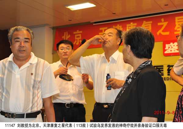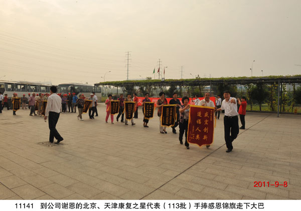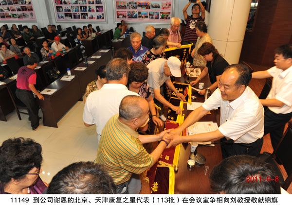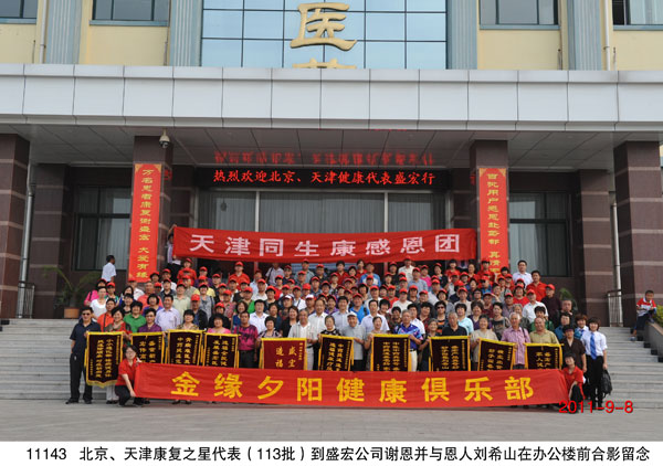 2011 年9月8日 ,恰值仲秋佳節來臨之際,全國第113批北京、天津的200多名頸椎病、腰椎間盤突出、關節炎等康復之星抵達盛宏,他們來到盛宏不僅僅是參觀仰慕已久的“盛宏四館一書”,而是要向劉希山教授當面述說自己康復后的喜悅之情,當面謝恩…… 于學江 先生,天津人,先后三次代表自己和家人來盛宏感謝。2010年11月,他的老伴用盛宏透化帶不到3個月,治好了多年的頸椎病、腰椎椎管狹窄,而且沒有再犯;隨后他的老父親治好了腰腿痛,甩掉了拐杖;今年,他的親家委托于學江也買了一套,多年的頑疾康復了。 天津毛 俞麗老 太太受益于盛宏透化帶,看到當老師的孩子因頸椎病疼得不能上課,就買了一套給他用。第一次使用感覺又熱又痛,因受不了而停用,其 后在老 太太鼓勵下用了9天不痛了,1個月康復上班。到現在沒犯過。 天津臧樹 田老 先生一個勁地豎起大拇指,稱 劉希山 教授是“活神仙”。原來他患有退行性關節炎,為此行動不便,倍受折磨。使用盛宏透化帶1個禮拜痊愈。 北京的母炳興老先生這次是到盛宏“考察”的,他患有關節炎、坐骨神經痛,是拄著傘(當拐杖用)來的。到盛宏后用了兩次盛宏透化帶不再痛了,他高興地對 劉希山 教授說:“您不是普通人,您是華佗再世哪!” 在客人們的強烈要求下, 劉希山 教授不顧感冒掛吊瓶,親自到會議室為大家作中藥提速報告。他親自為一位位口腔潰瘍患者做治療,為面容干皺者作快速補水美容,為數位頭發花白、枯黃者噴上最新研制的烏發養發液,快速養發、當場變發的效果贏得了全場經久不息的掌聲。北京中藥提速服務中心主任白鳳娥、天津主任董建華說,同類產品各領風騷兩三年,沒見到有超過5年的。為什么盛宏十四年來長盛不衰?那就是盛宏好的道德,好的產品,好的文化! 劉 教授的為人和他親筆撰寫的《希山格言選》就是答案!