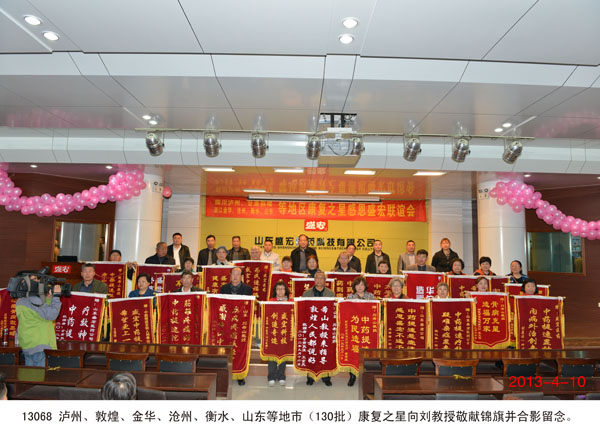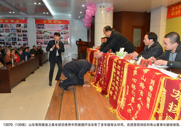 第130批股骨頭壞死等康復 患者到盛宏謝恩 4 月 10 日 ,四川瀘州、甘肅敦煌、浙江金華、山東、河北滄州、衡水等地的近 300 名股骨頭壞死、腰椎間盤突出、脈管炎等康復患者來到盛宏公司、盛宏中醫院謝恩并敬獻錦旗。 中國民族醫藥開發委員會副會長、山東省優秀共產黨員、盛宏公司董事長、盛宏中醫院院長劉希山親切接見了這批謝恩者, 劉希山董事長為感恩團作健康報告。四川瀘州服務中心主任牟光星、甘肅敦煌服務中心主任王正林作了講話。敦煌服務中心主任在講話中說:“劉希山教授‘以身試藥’的感人事跡已經傳遍了敦煌的街頭巷尾,現在劉教授又創建了盛宏中醫院,成就了盛宏事業的里程碑!”至此,赴盛宏謝恩的康復患者達到了27省、100多地市、130批共計三萬多人。 劉 教授在健康報告當中說,我們創建盛宏中醫院不是以盈利為目的,我們是為了給老百姓真正的療效!為什么醫患緊張?就是因為老百姓花了錢看不到療效。什么才是硬道理?療效就是硬道理!我們醫院要建成老百姓最滿意、最放心、醫患關系最和諧的醫院。醫院現在實行見效后再付款,是否見效由患者本人確定。劉希山教授還讓大家警惕假冒偽劣的盛宏產品,防止上當受騙,劉教授說,人品決定產品,沒有好的人品,就不可能有好的產品!劉教授說,今天大家從四面八方來到盛宏,他非常感動,尤其是從6000里以外的甘肅敦煌遠道而來的患者。劉教授說:“歡迎大家常來盛宏做客,我也會常去看看大家!”此時,現場響起熱烈的掌聲。 雙側股骨頭壞死患者牟邵忠在感恩現場訴說他得病之后的艱辛,以及他幸運地遇到盛宏的中藥提速獲得康復的故事,最后情不自已,給劉希山教授連續磕頭謝恩,又拉著老伴給劉教授叩謝。 三次跪地,感動全場! 一面面鮮紅的錦旗送到了恩人劉希山的手中,一句句發自肺腑的感謝,一張張激動的笑臉,一次次深情的握手,現場匯聚成了一片感動的海洋! 最后,劉希山教授應大家要求現場揮毫潑墨,一氣呵成了 一筆“一步登天福”、 一筆“一生百年壽”、“登天佛”、“一筆下山虎”、“一筆飛天龍”等榜書,讓全國的謝恩者大開眼界、欽慕不已!此時寸筆寸金,兩位老先生和一位老太太為“爭”劉教授寫的大“佛”面紅耳赤,最后“佛”字被撕成兩半……當那位老先生仍然珍惜不已地努力拼原撕開的佛字時,一位工作人員看到那位吃素二十多年、虔誠學佛的老太太遺憾的眼神時,就將自己珍藏的劉希山教授的“登天佛” 悄悄轉贈給了她——在 這里,無不是醫患和諧的真實寫照! 附:部分健康病例 牟邵忠,男, 60 歲,山東人。 06 年 7 月份經檢查得知自己得了雙側股骨頭壞死,他說當時的疼痛難以言表,生活完全不能自理,家庭生活也出現了危機,妻子與他離婚。 2012 年 2 月份開始使用電磁治療儀,使用一年多已經康復。康復之后,他又找了老伴,過上了幸福的生活!感激的心情溢于言表,他在現場給劉希山教授跪地謝恩,最后他還拉著老伴一起給劉希山教授磕頭!三次跪地,感動全場! 王守俊,男, 70 歲,河北滄州人。患腰腿痛,不能上自行車,使用電磁治療儀 3 個月,疼痛全部消失。作為一個老軍人,在現場他還表演了走正步,他說他現在騎車子都沒問題,他衷心的感謝劉教授,也希望大家都健康快樂! 丁念蓉,女, 70 歲,四川人。 2010 年患上單側股骨頭壞死,使用電磁治療儀半個月之后小便就減少, 4 個月股骨頭就恢復正常。 郭靈,女, 57 歲,甘肅敦煌人。患類風濕性關節炎,全身疼痛難忍,什么都做不了。使用電磁治療儀 5 個月,大關節已經不疼了,全身只剩手和腳踝處關節還未恢復,且經歷長途跋涉,也沒有什么不良反應。 |