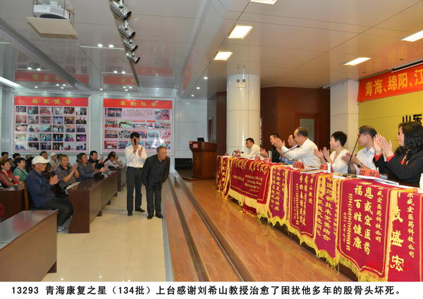 股骨頭壞死被醫學界成為“不死的骨科癌癥”,痛起來讓人徹夜不眠、痛不欲生,而世界上沒有特效藥,西醫往往采用置換一個假的股骨頭代替。楊老到省人民醫院確診后,醫生建議置換股骨頭,就在動手術臨近的時候,檢查出心臟有問題,不能置換。后來他接連去過北京、貴州、鄭州、上海等多家大醫院治療,幾萬塊進去了,不見效果,不能工作,不能自理……老人被折磨得生不如死,于是產生了輕生的念頭,誤走了“上吊”之路!幸虧被家人及時發現而救下。后來有朋友介紹,說盛宏電磁治療儀治療股骨頭壞死效果不錯,建議他試試。他到盛宏青海中藥提速服務中心一看,小小的一個門頭——設備先進、專家成群的北京大醫院都治不好,這個小地方能治好嗎?在朋友的說服下,“我抱著非常懷疑的態度開始治療。第一天用了三個藥包,結果不到十天時間,奇跡出現了——腰椎間盤突出好了!這讓我欣喜萬分,我看到了希望。連續使用接近100天,本來靠雙拐挪動,到目前(2013.9.25)我能用單拐或不用拐行走”,老人像正常人那樣在前面行走自如,贏得了大家雷鳴般贊嘆的掌聲,他轉身朝主席臺上中藥提速專利發明人劉希山教授深深鞠了一躬。“我心里好高興啊!我千言萬語都難以表達對劉教授的感激!”說到這兒,楊老已經是泣不成聲。